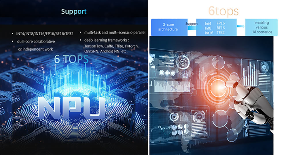 4. Edge AI: 6 Tops NPU cho phép các nhà phát triển xây dựng các ứng dụng AI có độ trễ thấp như hệ thống nhận dạng khuôn mặt và cảm biến thông minh.