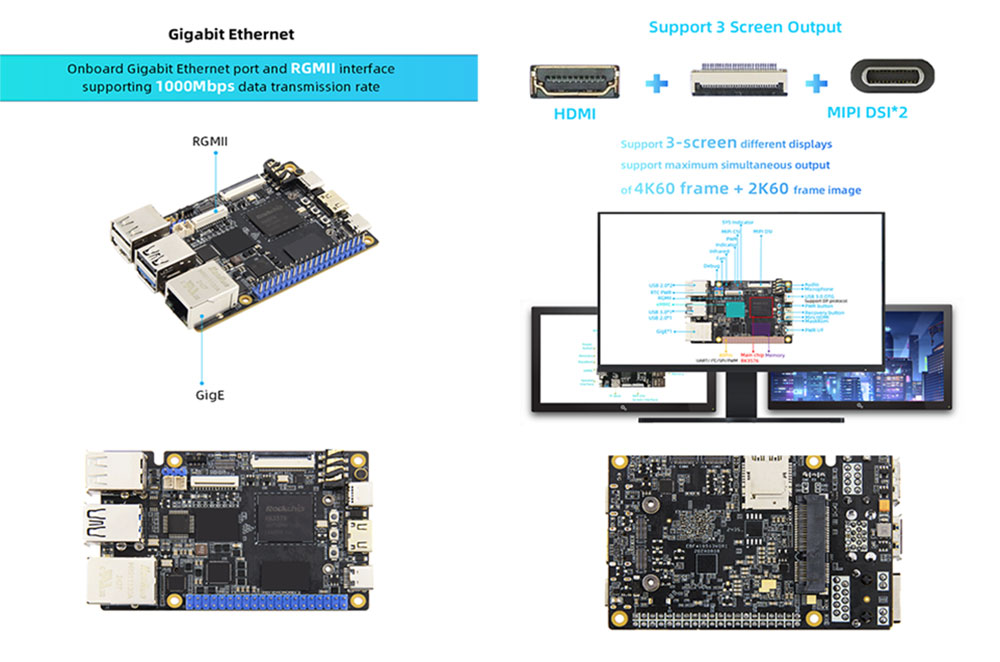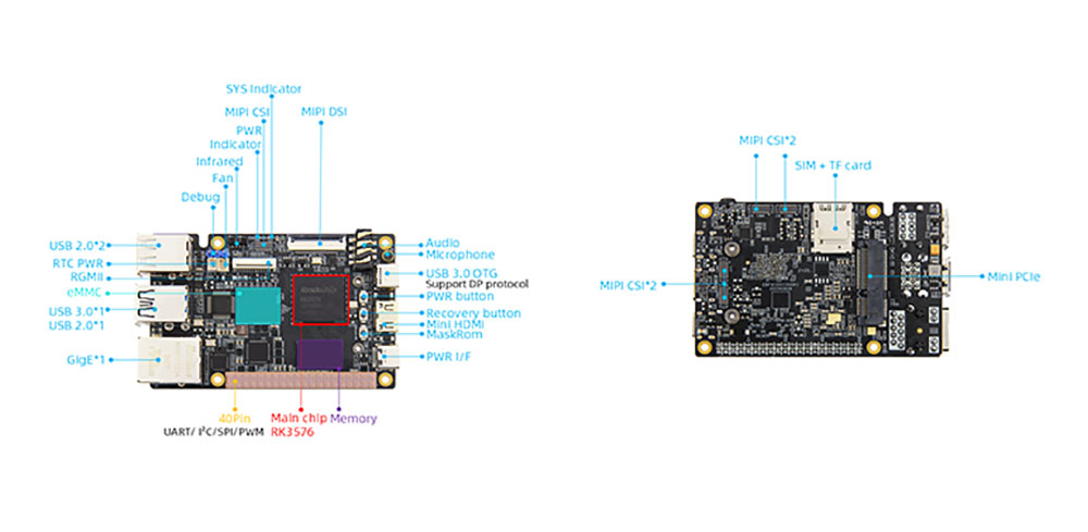 Tại trung tâm của RK3576 SBC là chip ROCKCHIP LỚN RK3576, được thiết kế để tính toán hiệu quả cao trên các khối lượng công việc khác nhau. Kiến trúc lai 8 lõi của nó-có các lõi hiệu suất 4X Cortex-A72 và lõi hiệu quả 4X Cortex-A53-kết hợp với GPU ARM Mali-G52 MP4, tạo ra một công cụ xử lý vượt trội trong đa nhiệm, các nhiệm vụ chuyên sâu về đồ họa.