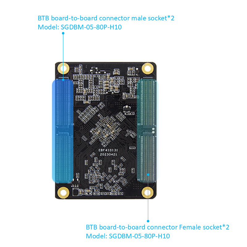 Có thể sử dụng bo mạch chủ lên bảng này (giao diện BTB) như một máy tính một bảng hiệu suất cao và bo mạch chủ nhúng để hiển thị, điều khiển, truyền mạng, lưu trữ tệp, điện toán cạnh và các kịch bản khác.